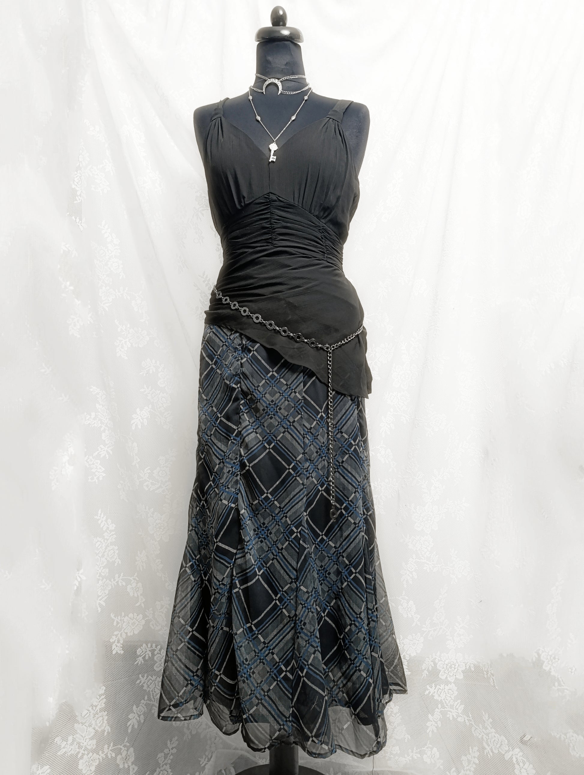 Vintage spódnica w szaro-niebiesko-czarną kratkę ‧₊˚✩彡