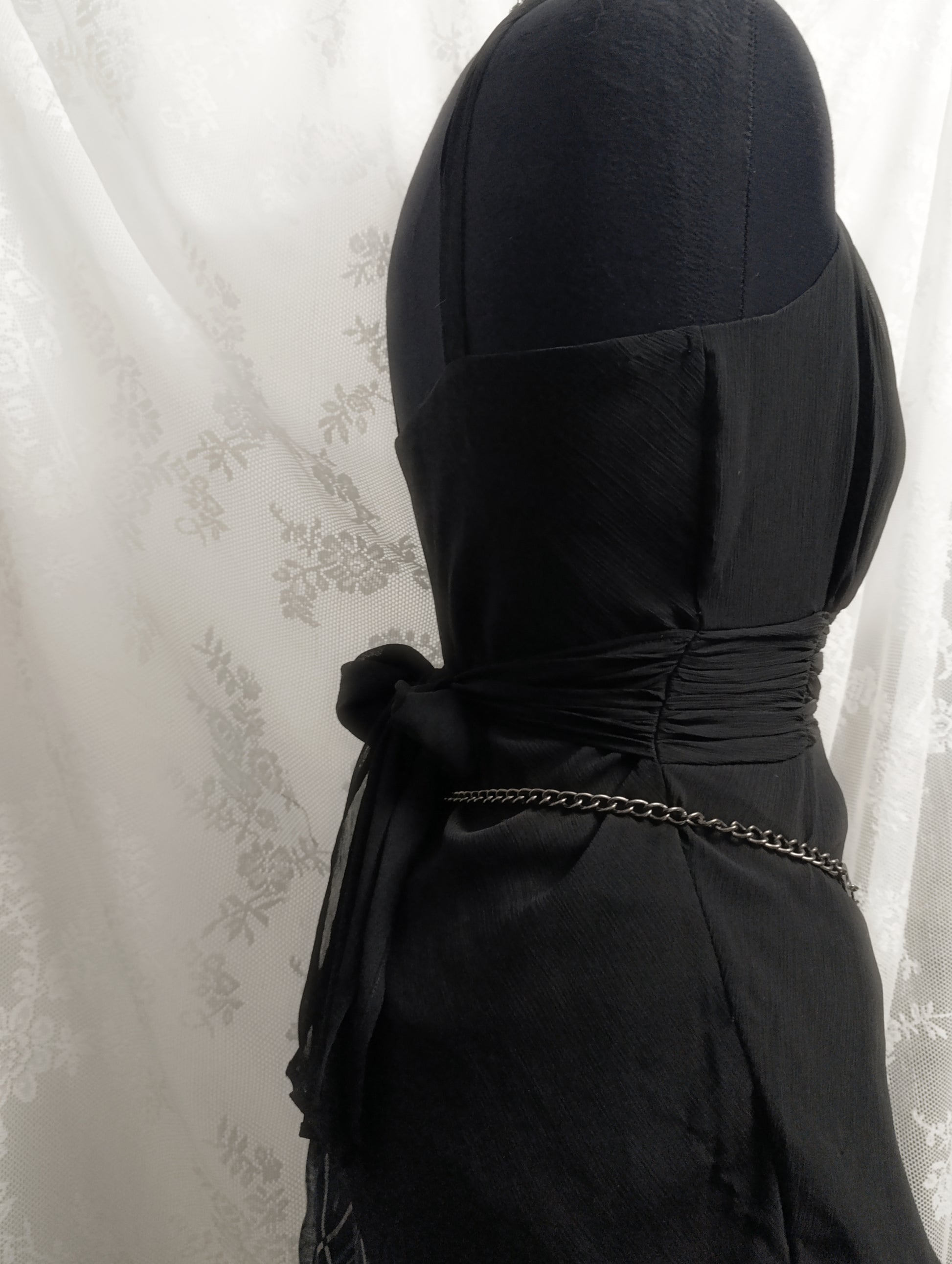 wymiary: biust 44 cm, talia 37 cm (z możliwością regulacji wiązaniem), długość całkowita 66 cm