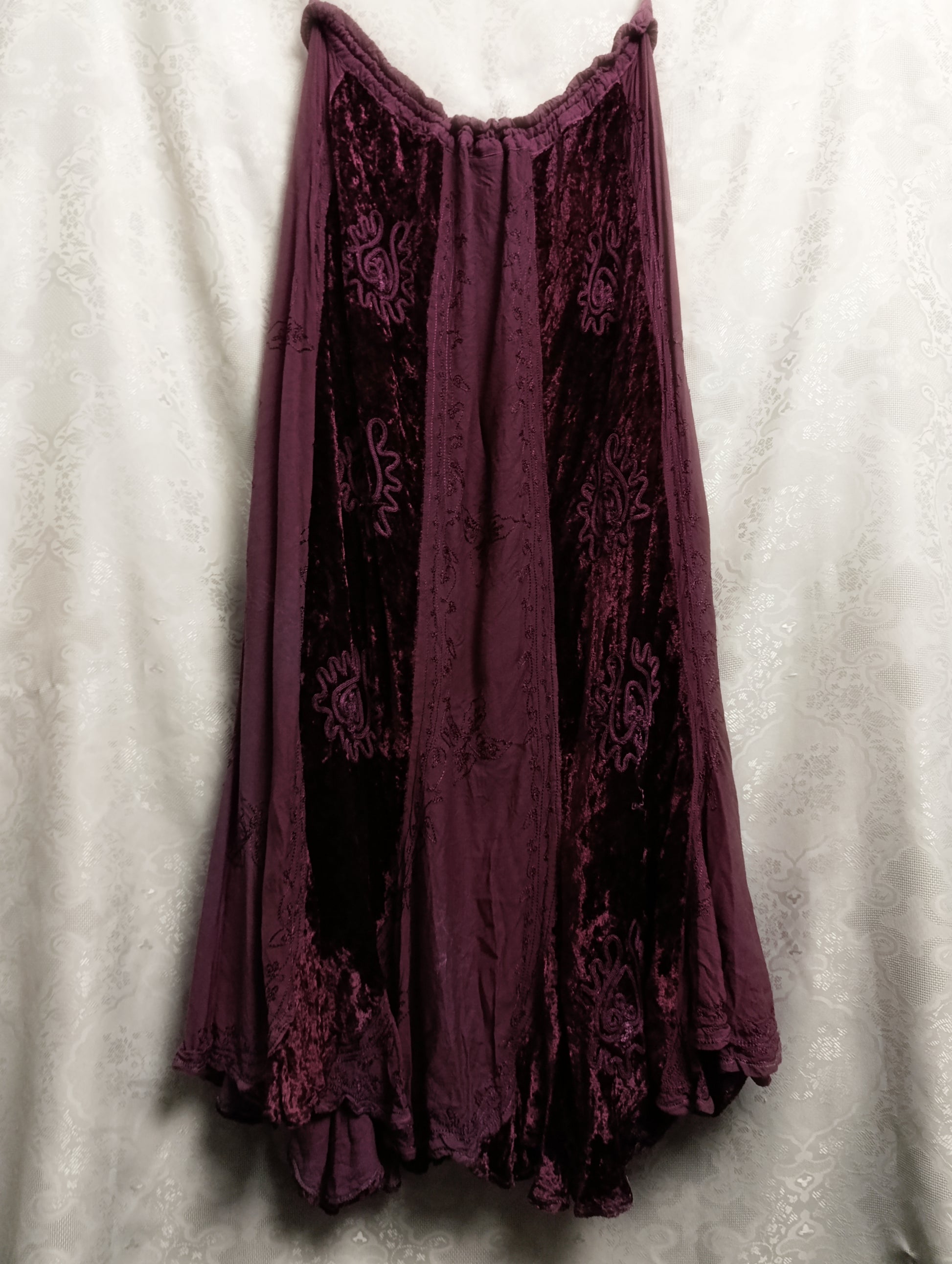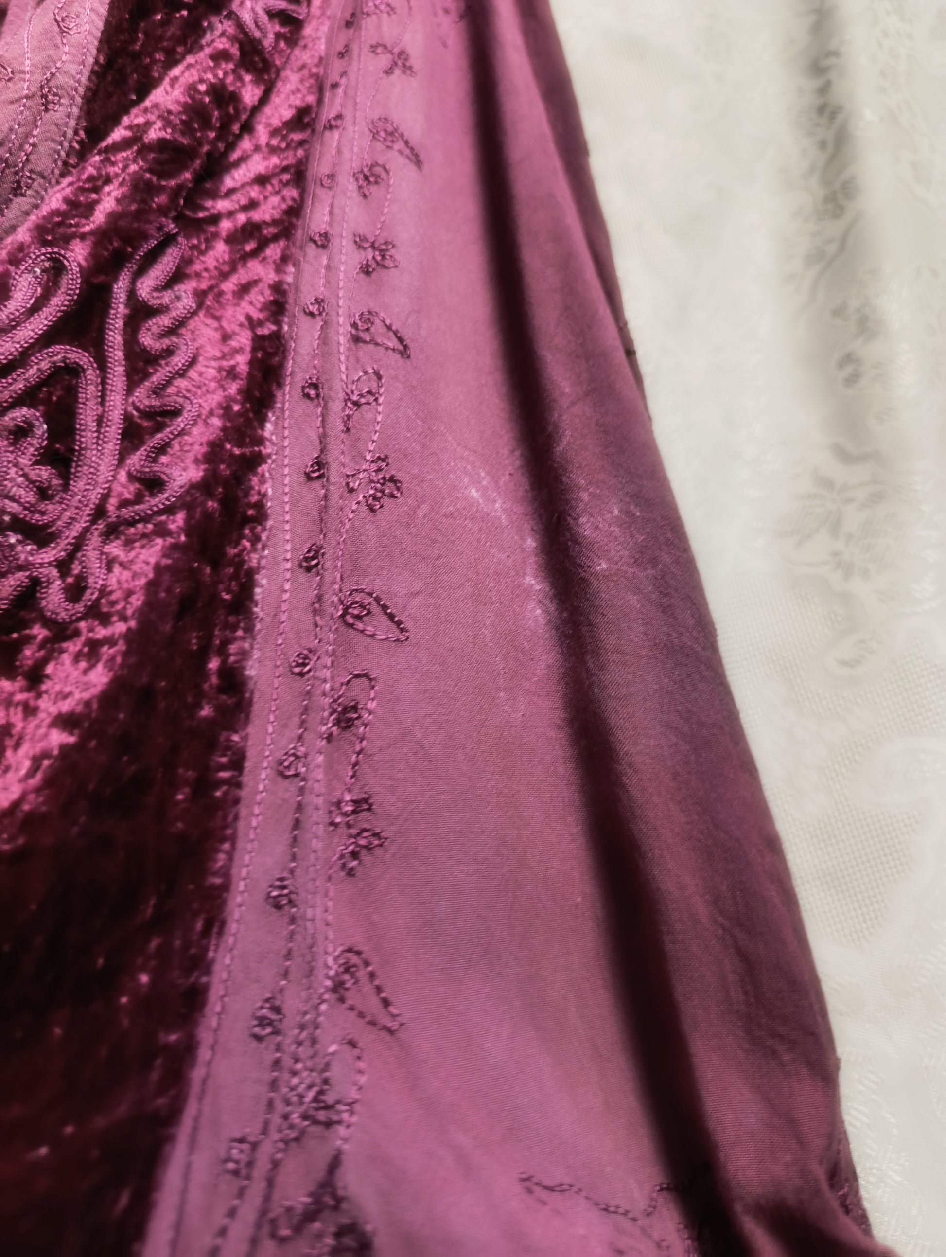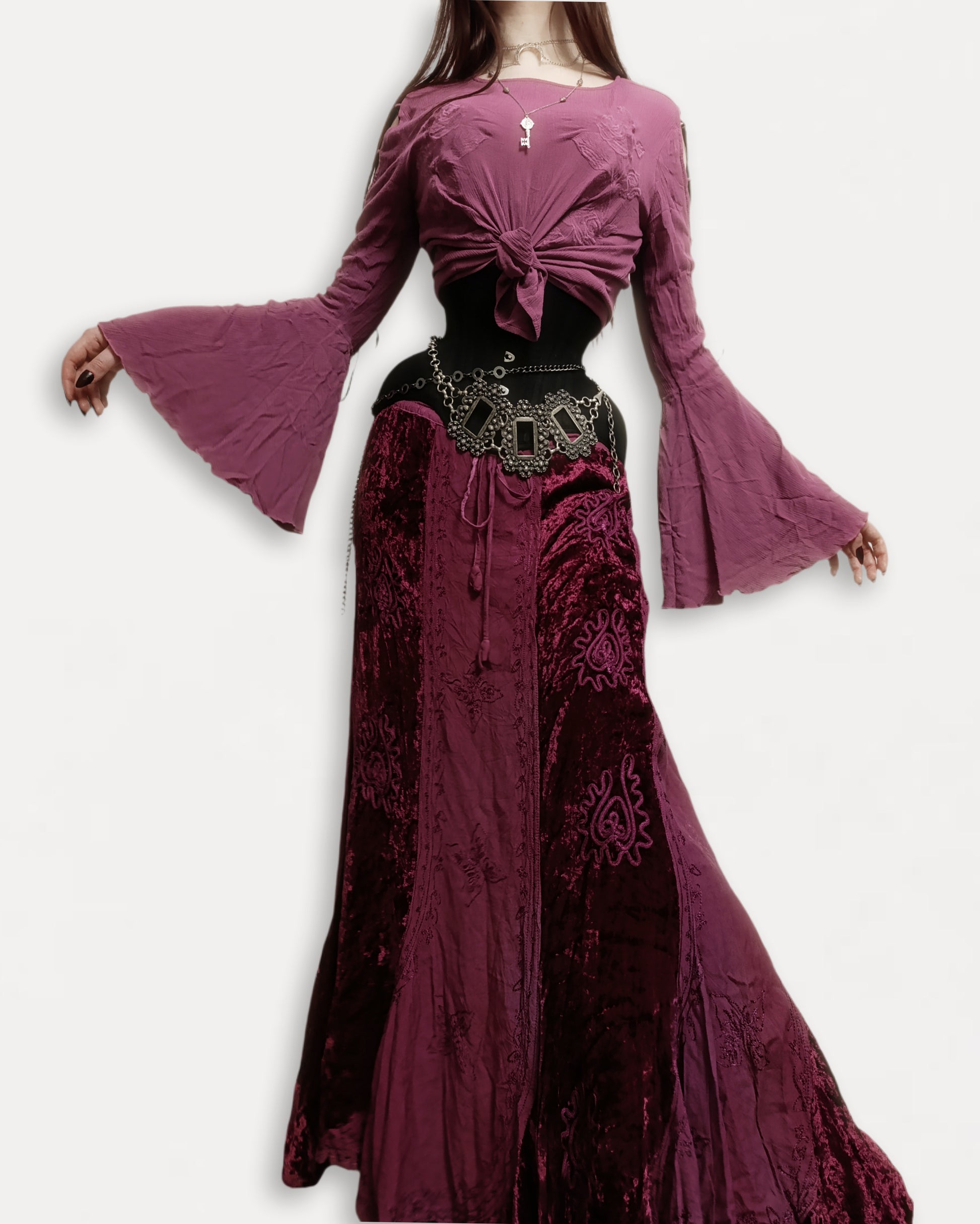 Różowa spódnica vintage w stylu whimsical, z welurowymi elementami oraz bogatymi zdobieniami, o regulowanym pasie wiązanym sznurkiem ₍ᐢ._.ᐢ₎♡