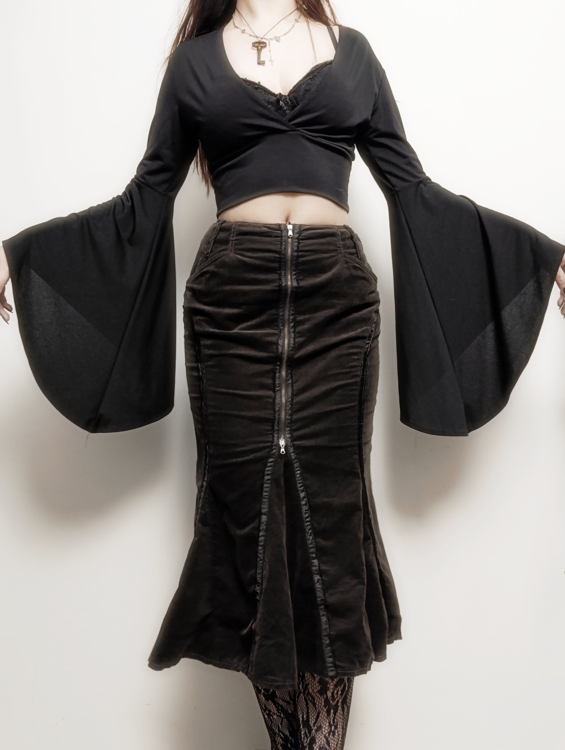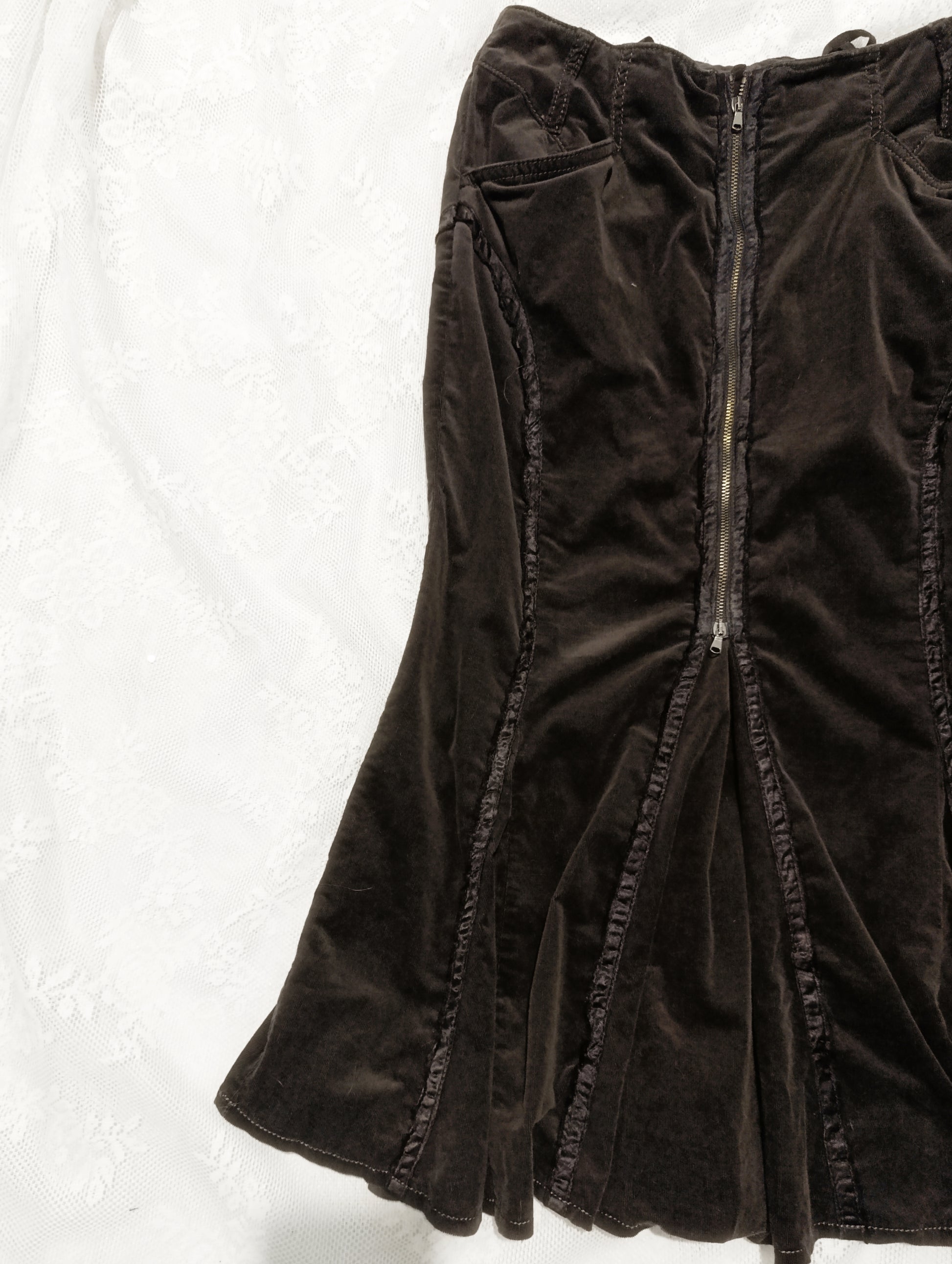 Brown vintage corduroy skirt with a zipper front and a delicate mermaid cut 📏�